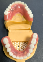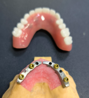 مختبر WM للأسنان لترميم القوس بالكامل، شريط CADCAM من التيتانيوم موضوع مع محدد موقع وقابل للإزالة فوق طقم الأسنان، ومحلول شريطي مقسم لمسار الإدخال غير الشائع